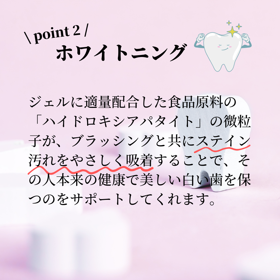 簡単でいながら安全・効果的ににオーラルケアができる、「ネオナイシン-e®*」配合の歯磨き・口腔ケアジェル。